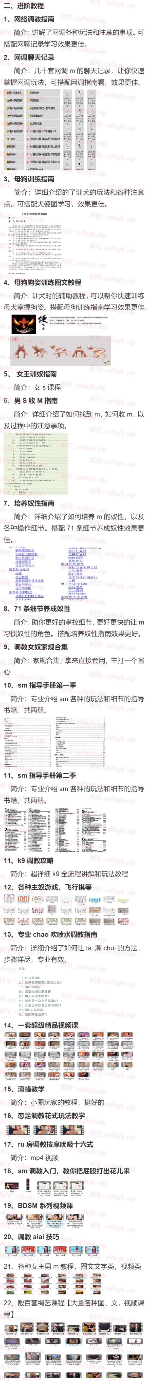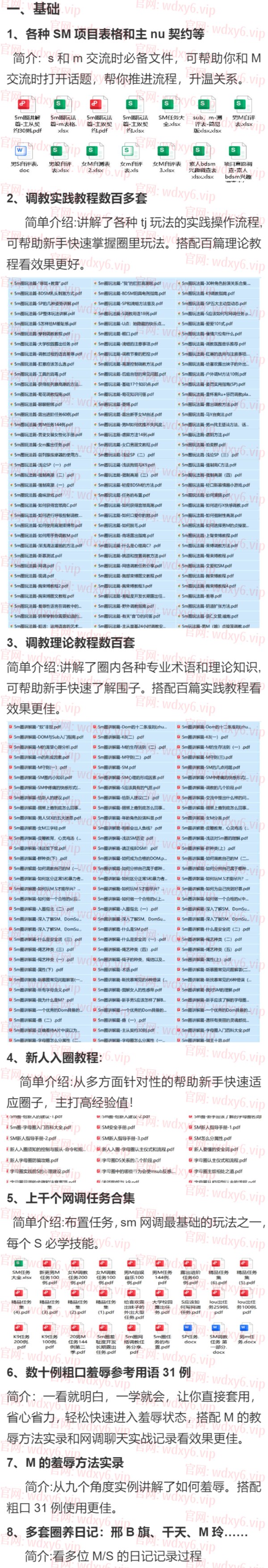 • 全网sm调教全套全体系课程,永久包更新!男女s等课程都包括了, 图文、视频、音频,电子书、课件文档都有!都很全、很完整,课程一直在更新,已更新至最新11月份!另外享有至少两个会员社群,调教实战技巧交流群,圈内交友群。